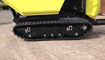 This is aided by innovative 'rocking rollers'. The middle two rollers along the bottom oscillate allowing the tracks to ride over debris whilst still keeping the load stable and giving the operator a safe ride.