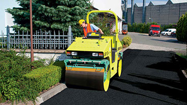 Both drums are hydrostatic driven and vibrating. The concept of the frame allows compacting close to walls and elevated curbs on both sides of the machine. Convenient for work within constrained areas due to its compact dimensions and small turning radius. Operator’s position provides perfect control of both edges of the drums.